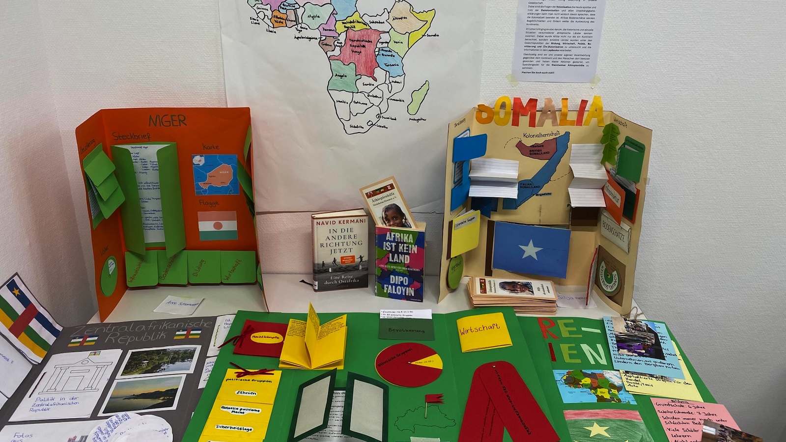 In dem Projekt zum Thema „Afrika entdecken“ wurden Lapbooks zu verschiedenen afrikanischen Ländern gestaltet. Jede Schülerin und jeder Schüler hat dabei ein eigenes Land bearbeitet. Mit den Lapbooks informieren sie so über Kolonialismus, Kultur, Politik, Geografie, Wirtschaft und weitere landestypische Besonderheiten in den afrikanischen Ländern. In der Arbeitsphase haben die Beteiligten mehrere Wochen lang recherchiert, ihre Ergebnisse ausgearbeitet, außerdem auch selbstständig gearbeitet und ihre Ergebnisse kreativ gestaltet. Ziel des Projekts ist die Vertiefung des Wissens über afrikanische Länder und die Auseinandersetzung mit Kolonialismus.