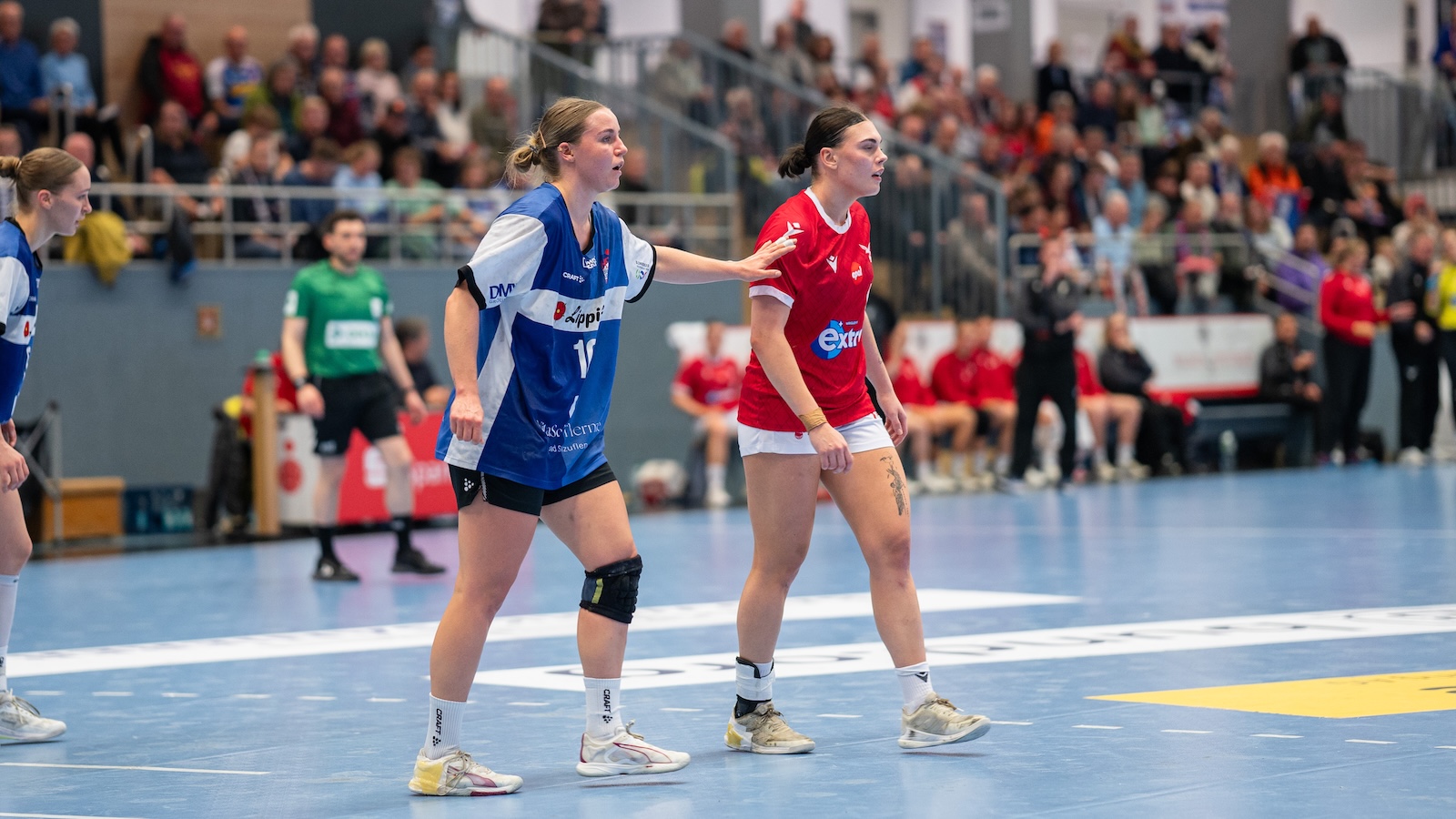 Die HSG netzte jedoch zuerst über Hauf ein, ehe die Isländerinnen prompt ausglichen und beim 2:1 sogar erstmals in Führung gingen. Über Díana Magnúsdóttir wehrten sich die Gastgeberinnen, glichen wieder aus. Dazu parierte Roth stark gegen Thompson. Vorne erzielte nun auch Kühne ihren ersten Treffer, der die Blombergerinnen wieder in Führung brachte. Die ersten Minuten verliefen weiterhin ausgeglichen. Besonders die beiden Angriffsreihen stachen hervor: In nur acht Minuten sahen die Zuschauer an der Ulmenallee bereits zehn Treffer. Erneut bekam Roth die Finger an den Ball, Njinkeu schaltete am schnellsten und netzte mit ihrem ersten Treffer der Partie zum 6:5 ein. Vieles lief bei Valur über Thompson, die den Ausgleich erzielte.