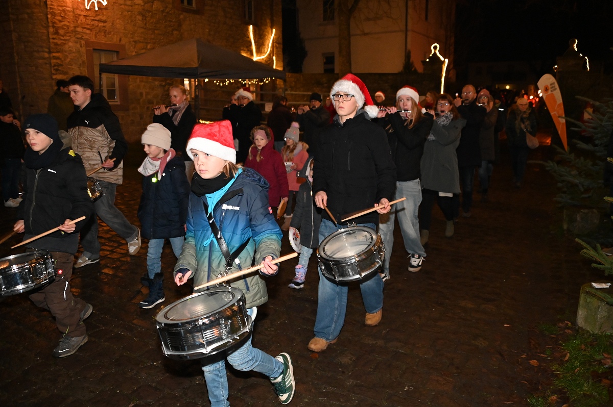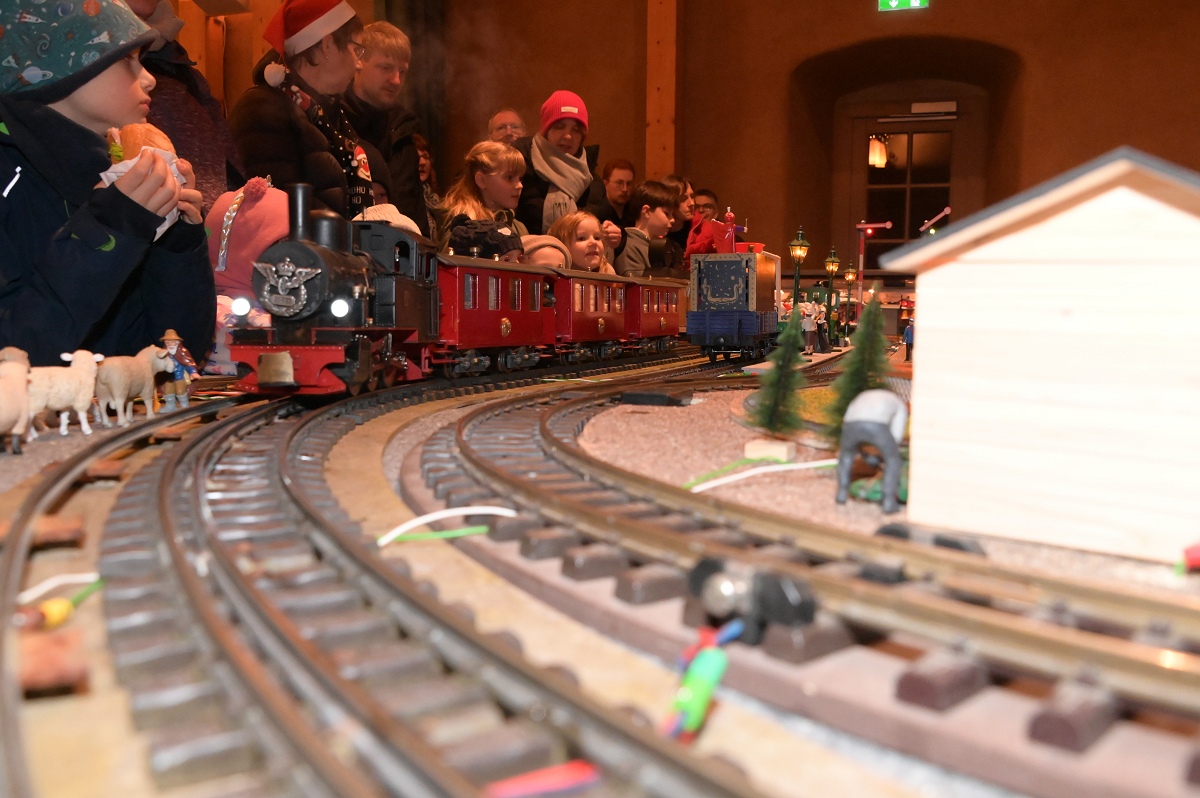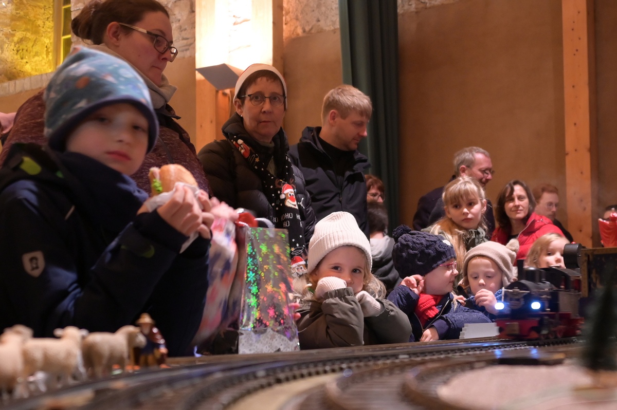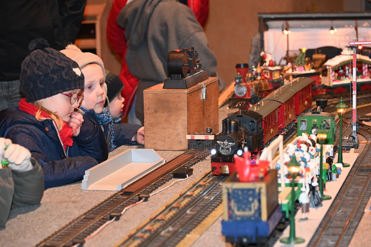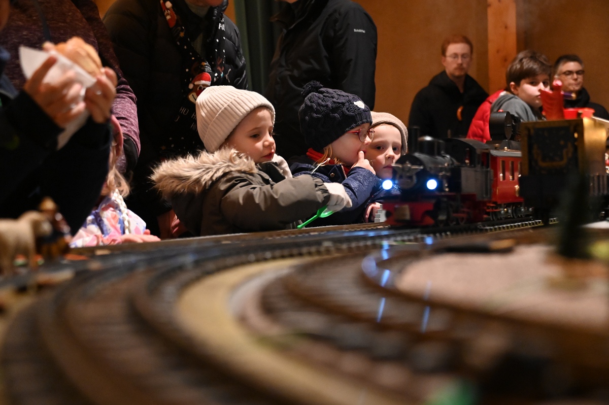 Ein besonderer Höhepunkt für Familien war der Laternenumzug am späten Nachmittag. Gemeinsam zogen Kinder, Eltern und Gäste vom Marktplatz zum Bahnhof, wo der Nikolaus, zur großen Freude der Kinder, mit dem Zug ankam, zusammen mit Knecht Ruprecht, den Zwergen und natürlich den weihnachtlich angezogenen „Nethe-Eseln“. Begleitet von Musik wurde er anschließend zum KuStall geführt, wo er sich viel Zeit für die kleinen Besucher nahm, Nikolaustüten verteilte und für Erinnerungsfotos zur Verfügung stand. Auch der Sonntag bot ein abwechslungsreiches Programm. Nach dem Frühschoppen und dem traditionellen Grünkohlessen lud das Advents-Café mit einer großen Auswahl an selbstgebackenen Kuchen und Torten zum Verweilen ein. Angebote der Pfadfinder, ein Streichelzoo sowie eine Modellbahnanlage im KuStall begeisterten große und kleine Besucher gleichermaßen.