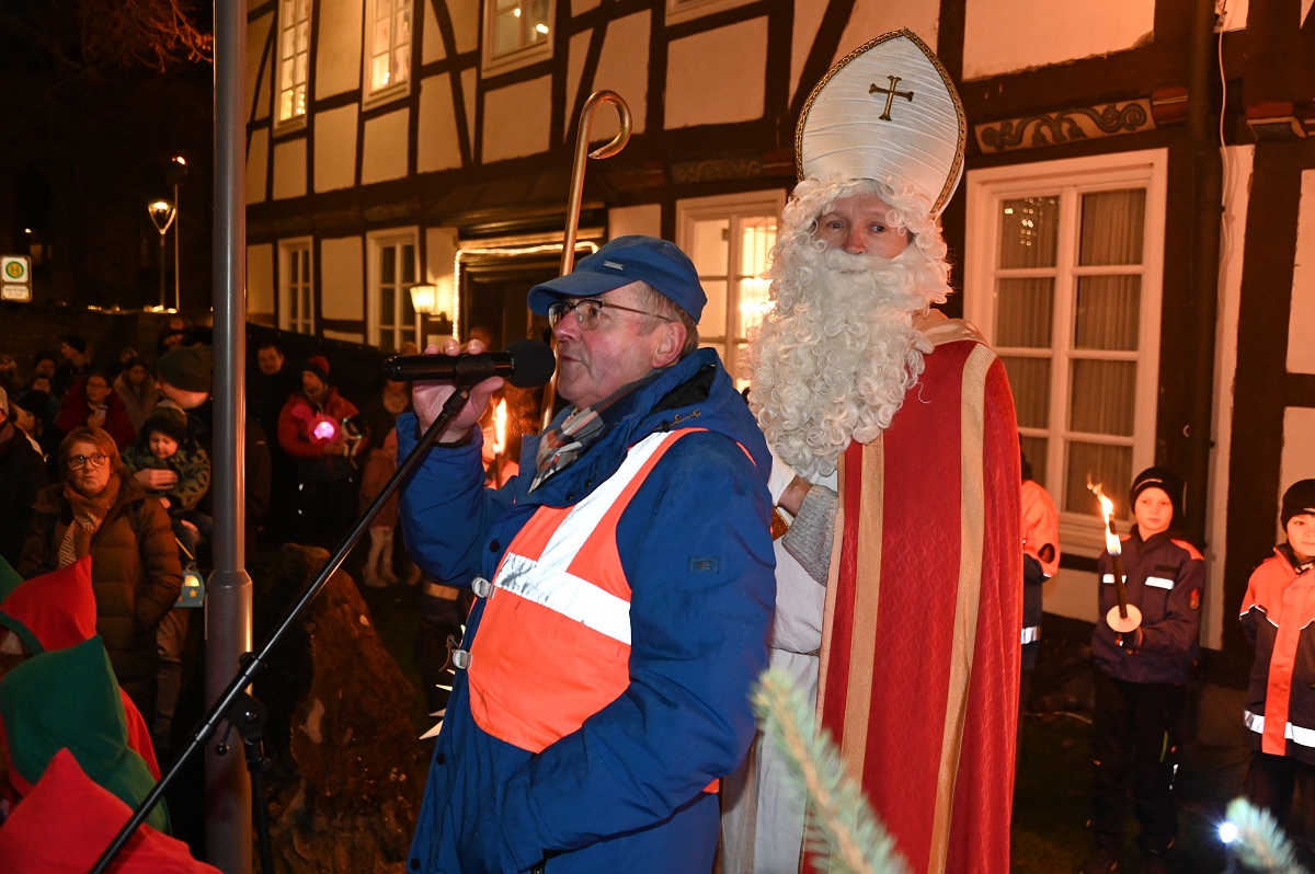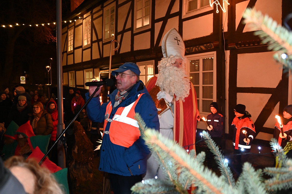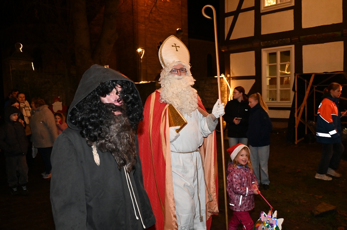 Ottbergen (TKu). Der wohl meistbesuchte Nikolaus- bzw. Weihnachtsmarkt im Kreis Höxter an diesem Wochenende: Der Ottberger Nikolausmarkt vom 5. bis 7. Dezember 2025 ist wieder sehr gut eingeschlagen und sorgte für echte vorweihnachtliche Stimmung bei den Menschen in Ottbergen im Wiemersmeyerschen Hof und im KuStall. Besonders der Nikolaustag am 6. Dezember wurde zu einem Höhepunkt des Wochenendes: Alleine mehr als 500 Menschen kamen zum Bahnhof, um den Nikolaus festlich in Empfang zu nehmen. Im Wiemers Meyerschen Hof trafen die Nikolauspilger nochmals auf mehr als 100 Menschen. Der Hof platzte in diesem Jahr rekordverdächtig aus „allen Näthen“!