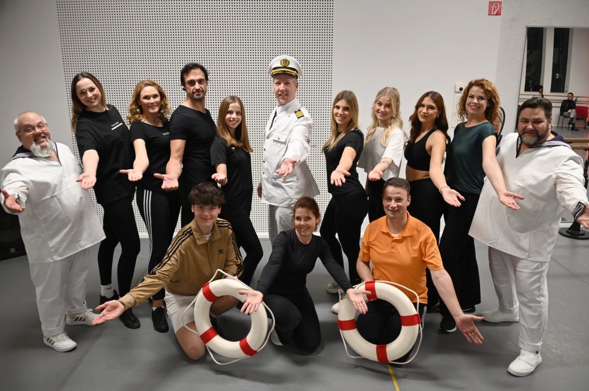 Höxter/Beverungen (TKu). Die neue Schlosstheater-Musikrevue befindet sich auf Rekordkurs. Die Nachfrage ist enorm gut! Mit „Kreuz & Quer – Liegst Du noch oder schwankst Du schon?“ bringt das Schlosstheater Fürstenberg ab dem 28. Februar 2026 ihre neue Musikrevue auf die Bühne in der Residenz Stadthalle in Höxter. Nach dem großen Erfolg von „Never forget – …und am Ende die Jahrtausendwende“ legt das Ensemble um die Schlosstheater-Leiterin Bärbel Mihm nun nach und das mit „voller Kraft voraus!“. Bis zum 29. März 2026 sind insgesamt 15 Vorstellungen geplant. Bereits seit Mitte September wird in der Beverunger Tanzfabrik geprobt und das aktuell sogar zweimal pro Woche intensiv. Das Ensemble, bestehend aus 15 Akteuren, darunter acht Frauen und sieben Männern, studiert das zum Teil selbst geschriebene Programm ein, das die Zuschauer mit Musik, tänzerischer Präzision, Humor und tollem Bühnenoutfit mitreißen soll. „Alles wird natürlich wie immer live gesungen“, betont Bärbel Mihm. Auf der Bühne entsteht dabei eine maritime Welt: Das Bühnenbild soll einem Schiff nachempfunden sein, unterstützt von einer ausgefeilten Lichtgestaltung.