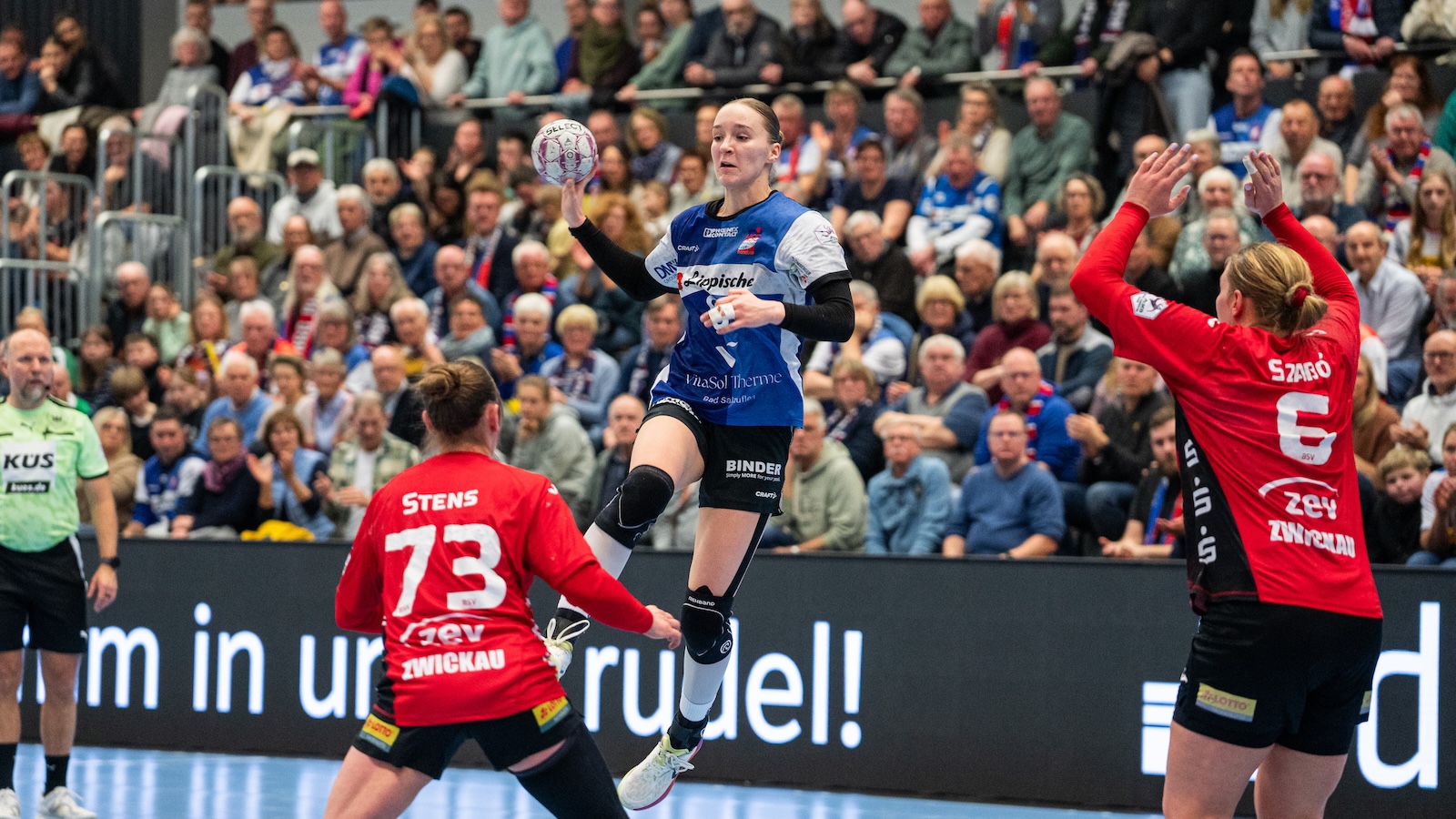 HSG Blomberg-Lippe: Veith, Lepschi, Roth; Rüffieux (2), Jacobsen (2), D. Magnúsdóttir (4), Kühne (4), Mühlner (3), Vegué (8), Bucher, Sandberg (2), Hauf, E. Magnúsdóttir (1), Njinkeu (3)